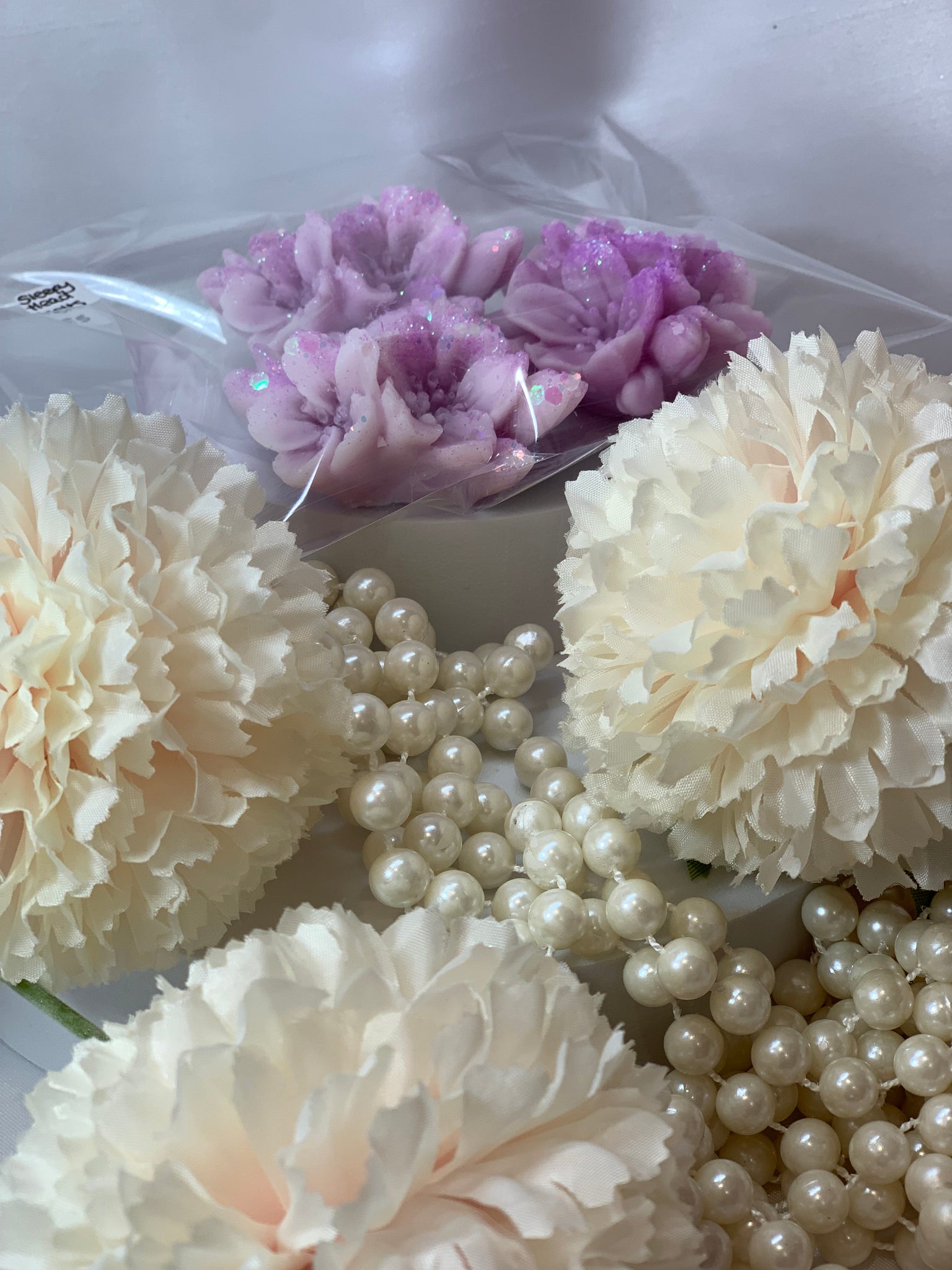 Soy wax melts - come in a pack of 3 of the most beautiful flowers, with added sparkle.